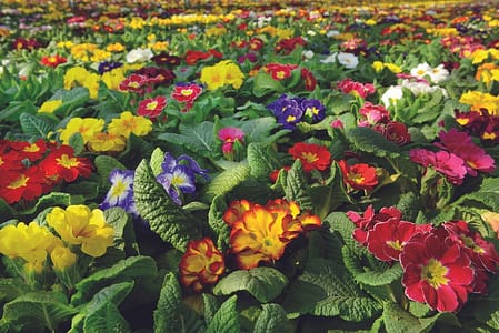 Large selection of colorful primroses